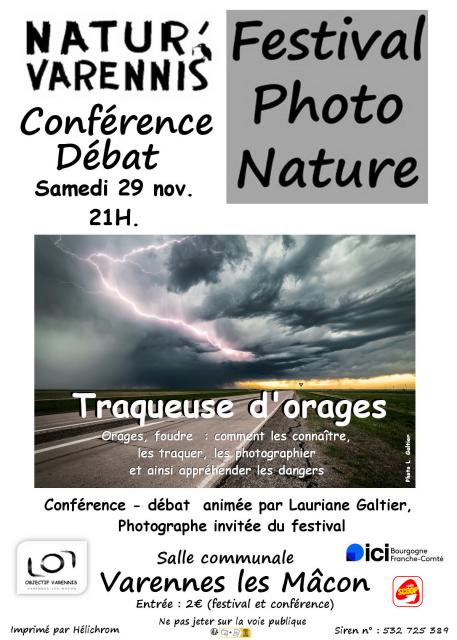Profitez en plus d'une conférence - débat animé par Lauriane Galtier, photographe invitée du festival samedi 29 novembre à 21h.