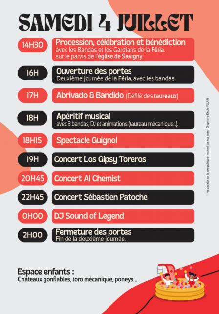 Programme du samedi 4 juillet :