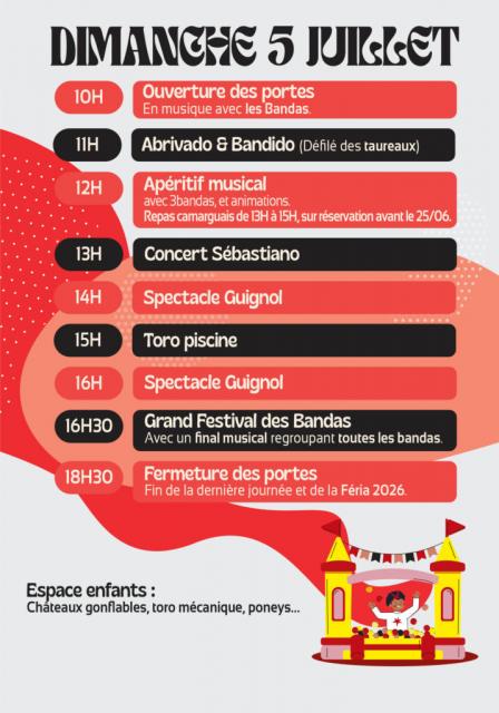 Programme du dimanche 5 juillet :