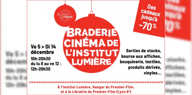 Depuis vendredi 5 décembre jusqu'au dimanche 14 décembre, la braderie annuelle de l'Institut Lumière se réinvente et propose une offre décuplée, sur deux lieux.