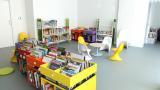 Les enfants de moins de 7 ans ont également leur espace, avec des collections dédiées, du mobilier ludique et adapté aux petits, derrière une large baie vitrée donnant sur la ville.