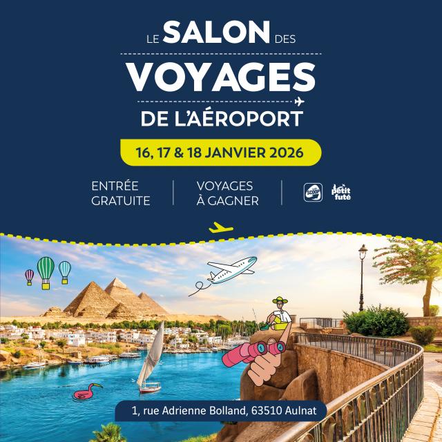 Rendez-vous du vendredi 16 au dimanche 18 janvier 2026 dès 14h, dans le hall de l'aérogare de Clermont-Ferrand