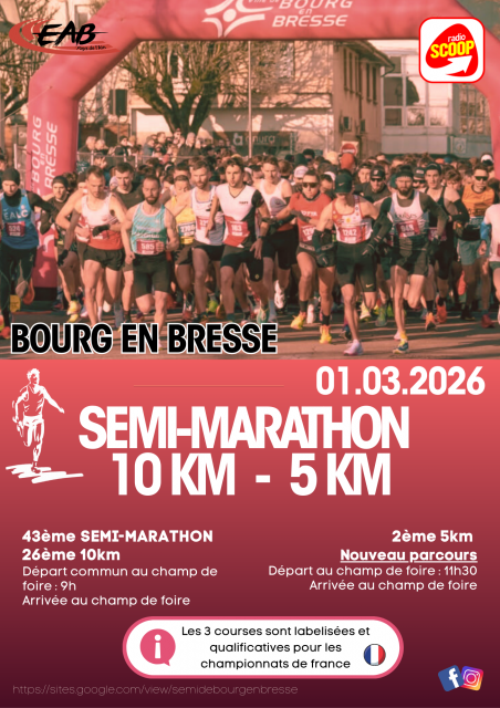 Plus d'infos et inscription sur le site Semi de Bourg-en-Bresse.