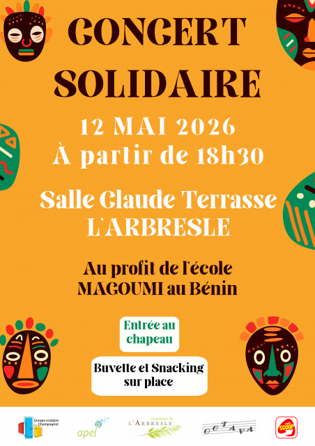 Entrée au chapeau : chacun donne ce qu'il veut, ce qu'il peut. L'intégralité des dons sera reversée à l'association “Les Petits Pas de Magoumi”, qui soutient une école maternelle en grande difficulté au Bénin — une école avec laquelle une des classes de maternelle échange toute l'année.