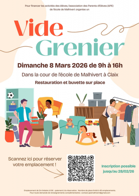 L'APE de Malhivert organise un vide grenier le dimanche 8 mars, dans la cour de l'école.