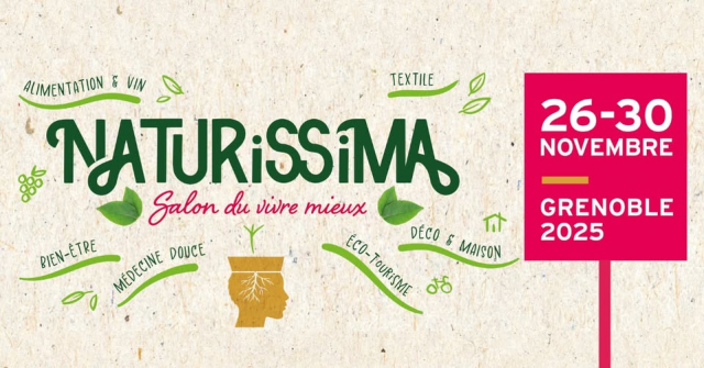Du 26 au 30 novembre 2025, le parc des expositions de Grenoble, Alpexpo, accueillera la 38ème édition de Naturissima, le salon incontournable de l'environnement, de nouvelles manières de consommer/ de consommations et du bien-être dans la région grenobloise.