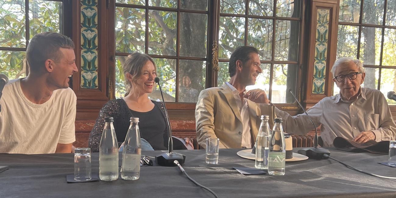 Woody Allen, Melvil Poupaud, Lou de Laâge et Niels Schneider en conférence de presse pour "Coup de chance" - © Radio SCOOP