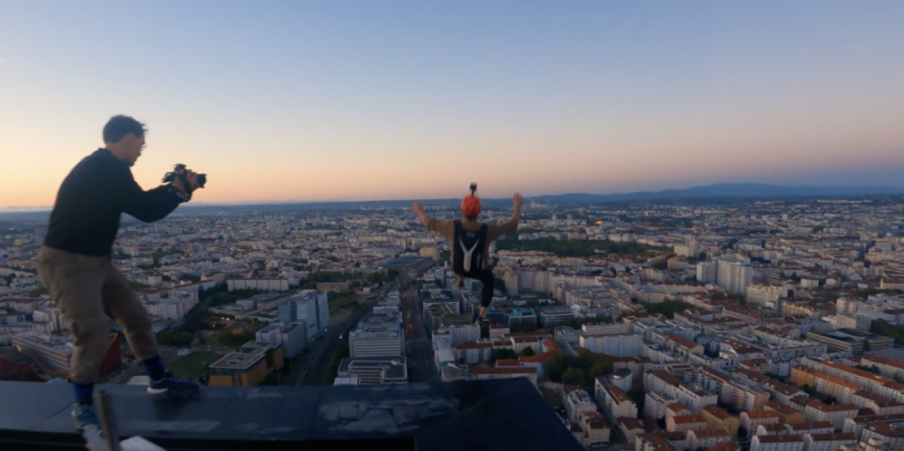 Dans une vidéo teasing publiée sur Instagram, l'homme se jette dans le vide. Juste avant d'actionner son parachute et atterrir sur le boulevard Vivier Merle. Il est filmé par son collègue Antoine Explore.