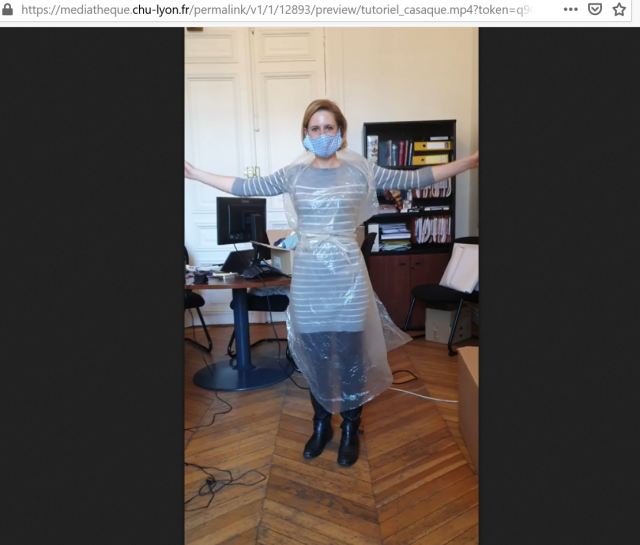 Tuto à l'appui, les professionnels de santé sont également invités à fabriquer eux-mêmes leur tablier avec un sac poubelle transparent de 110 litres.