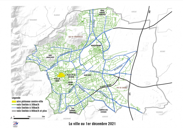 | La carte des axes limités à 30 km/h à Clermont-Ferrand. © Ville de Clermont-Ferrand |