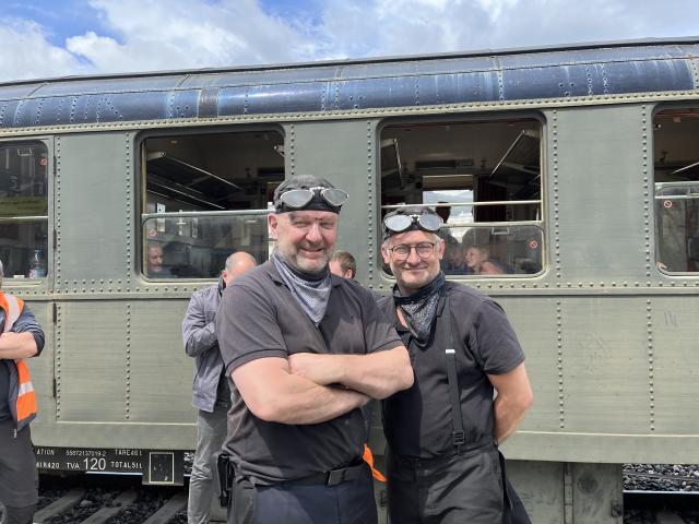 | Stéphane Schneider, à droite, l'un des conducteurs de la locomotive. © Radio SCOOP/Carmen Buecher |