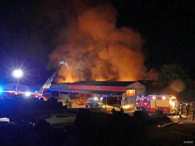 À leur arrivée, le bâtiment de 1.000 m² contenant du blé et un stock d'engrais était totalement enflammé.
