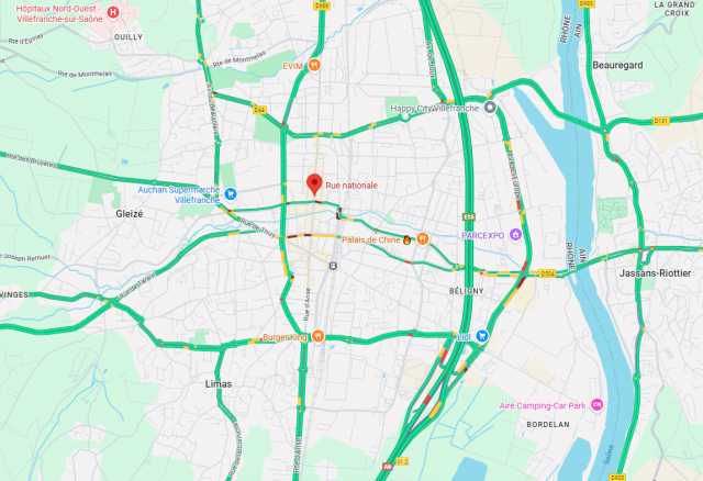 | La rue Nationale à Villefranche-sur-Saône. © Capture d'ecran Google Maps. |