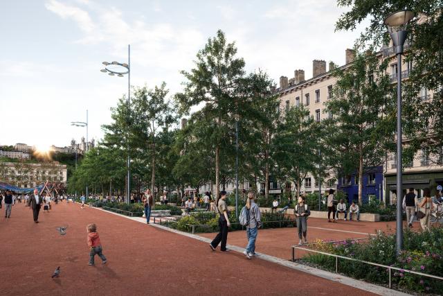Il prévoit la renaturation des pieds d'arbres avec des fosses de pleine terre continues, ainsi que l'implantation de végétation basse et arbustive, adaptée au changement climatique.