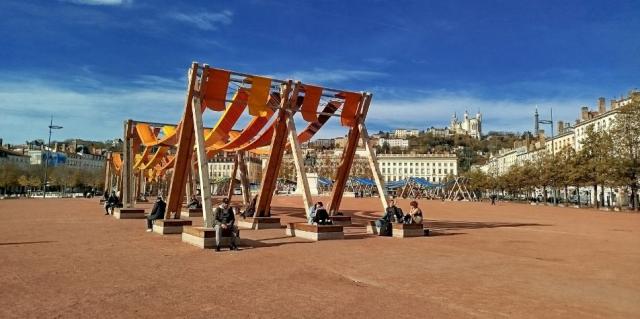 | Place Bellecour avec l'installation "Tissage urbain" © Radio SCOOP |