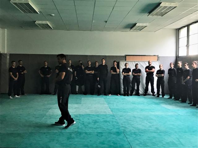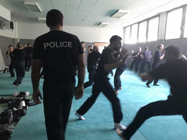 Après la théorie, place à un peu de pratique pour les élèves gardiens de la paix. Direction le gymnase pour deux heures d'exercices. "On est sur un apprentissage des bases de techniques de défense et d'interpellation", indique Nicolas, brigadier-chef et formateur. "Ils sont très motivés, ça fait plaisir d'ailleurs." Pour lui, le fait de passer l'année à l'hôtel de police peut être un réel avantage. "D'être aux contacts de collègues en services, c'est une occasion pour eux de leur poser des questions, se renseigner... Et peut-être se positionner sur des services auxquels ils n'auraient pas pensé."