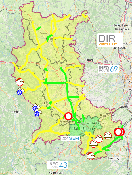 Dans la Loire, les conditions de circulation sont délicates sur l'ensemble du département suite à la présence de neige et de verglas localisé. Là-aussi, des opérations de traitement des chaussées sont en cours.