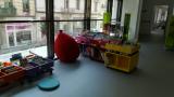 Les enfants de moins de 7 ans ont également leur espace, avec des collections dédiées, du mobilier ludique et adapté aux petits, derrière une large baie vitrée donnant sur la ville.