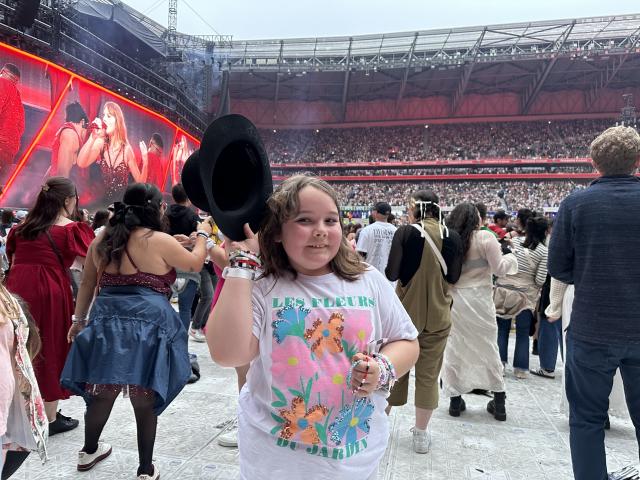 Erina, une jeune fan venue avec sa famille du Nord-Pas-de-Calais, a eu la chance de recevoir le chapeau de Taylor Swift.