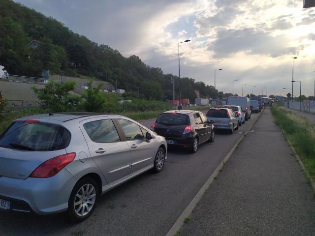| Des bouchons sur l'A47, Ã Givors © Illustration - Radio SCOOP / Léa Duperrin |