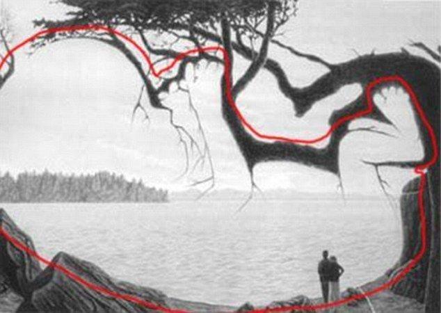 Alors, avez-vous trouvé ? Voici un petit indice : concentrez-vous sur les arbres aux formes étranges. Ils forment une partie du corps du bébé.