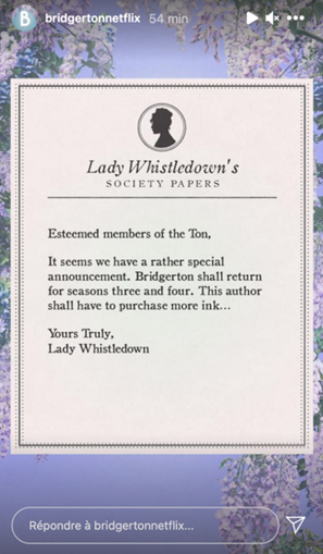 | Chronique des Bridgerton © Chronique des Bridgerton - Story Instagram |