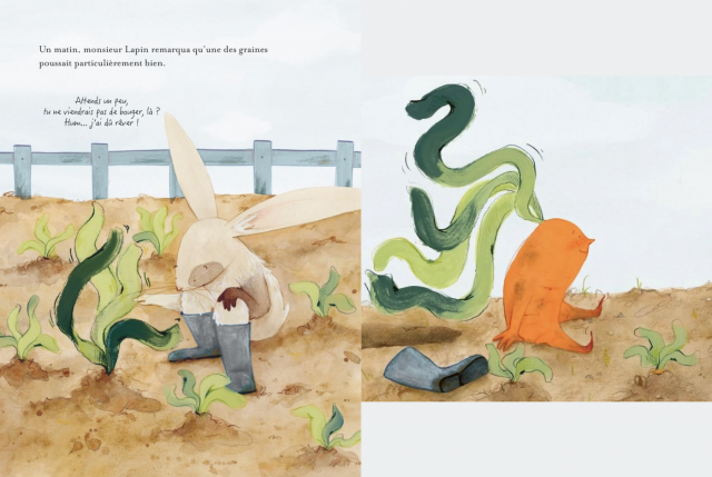 C'est un lapin, donc forcément, la première chose qu'il va semer, ce sont des carottes.