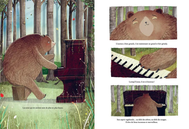 En plein cœur de la forêt, un ours découvre un vieux piano.