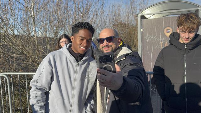 | Endrick avec les supporters de l'OL, vendredi 2 janvier. © Radio SCOOP |